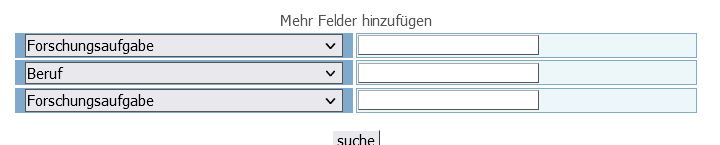 Jedes beliebige Feld ist mehrfach auswählbar und die Forschungsaufgabe ist vorhanden. Durch die Mehrfachauswahl können UND-Abfragen erstellt werden (Brauhausbesitzer und Schneider). Das Feld Forschungsaufgabe betrachte ich nach wie vor als wichtig, da es als „Freifeld“ genutzt werden kann. Der Webtreesnutzer kann sich über dieses Feld beliebig viele eigene Abfragen generieren.