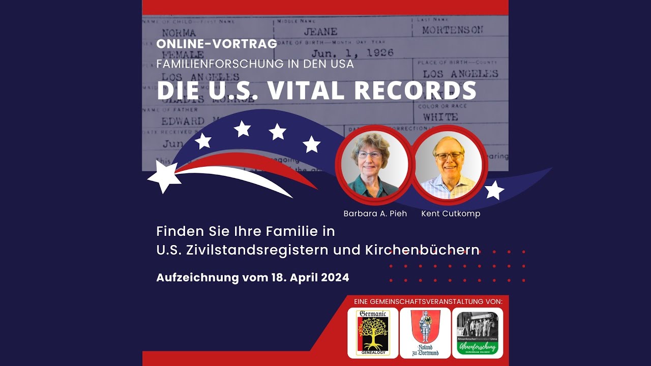 Aufzeichnung des deutschsprachigen Online-Vortrages Familienforschung in den USA - US ZIVILSTANDSREGISTER UND KIRCHENBÜCHER