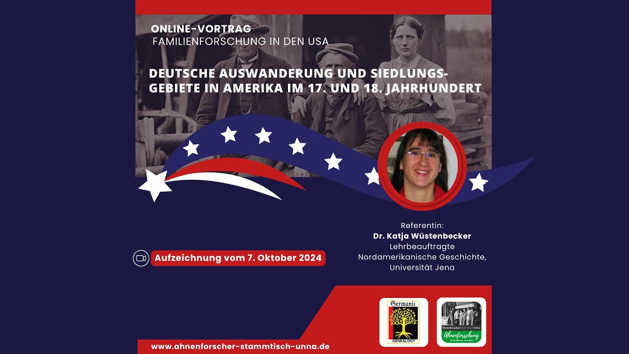 Aufzeichnung des Online-Vortrages Familienforschung in den USA - Deutsche Auswanderung und Siedlungsgebiete in Amerika im 17. und 18. Jahrhundert