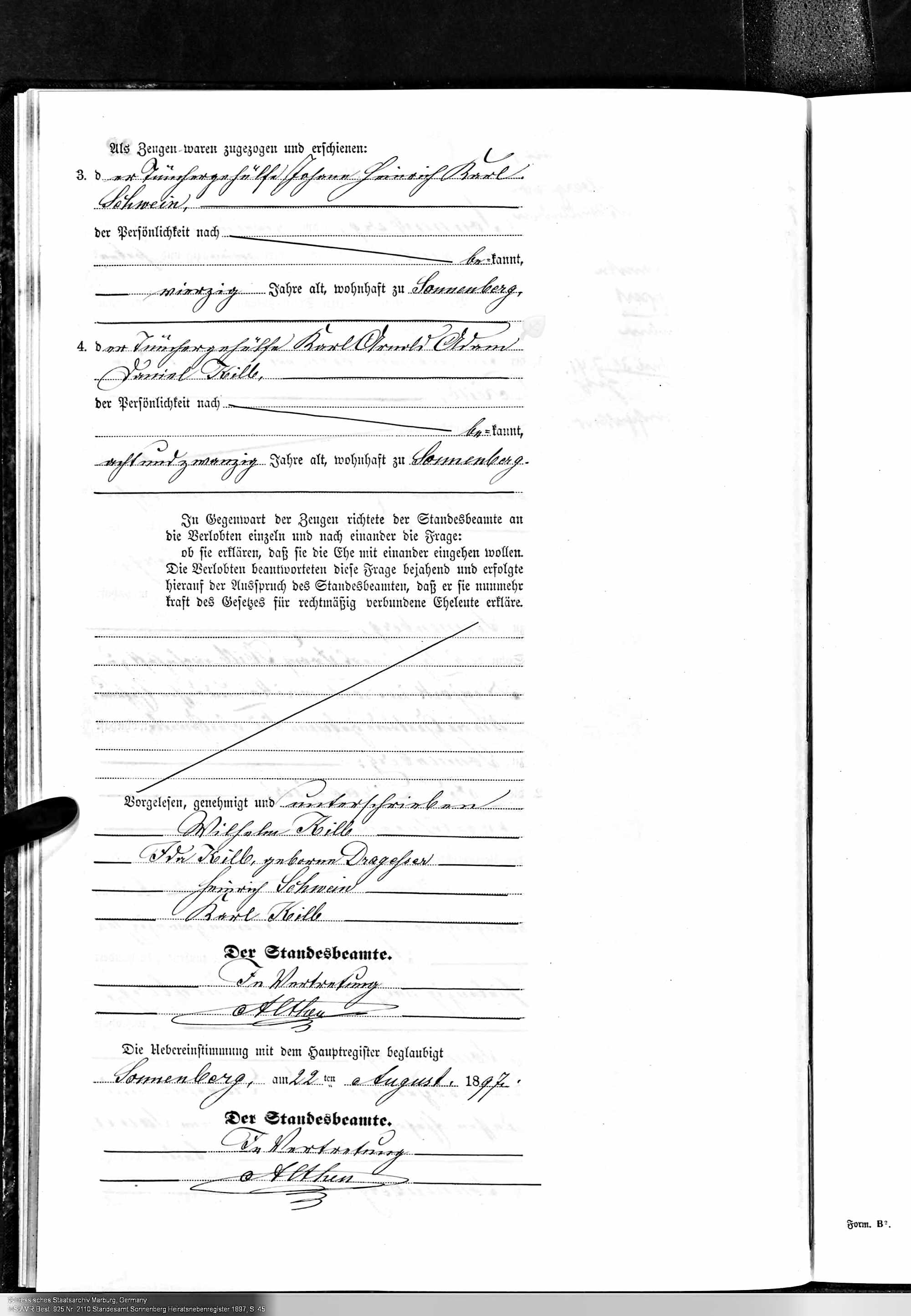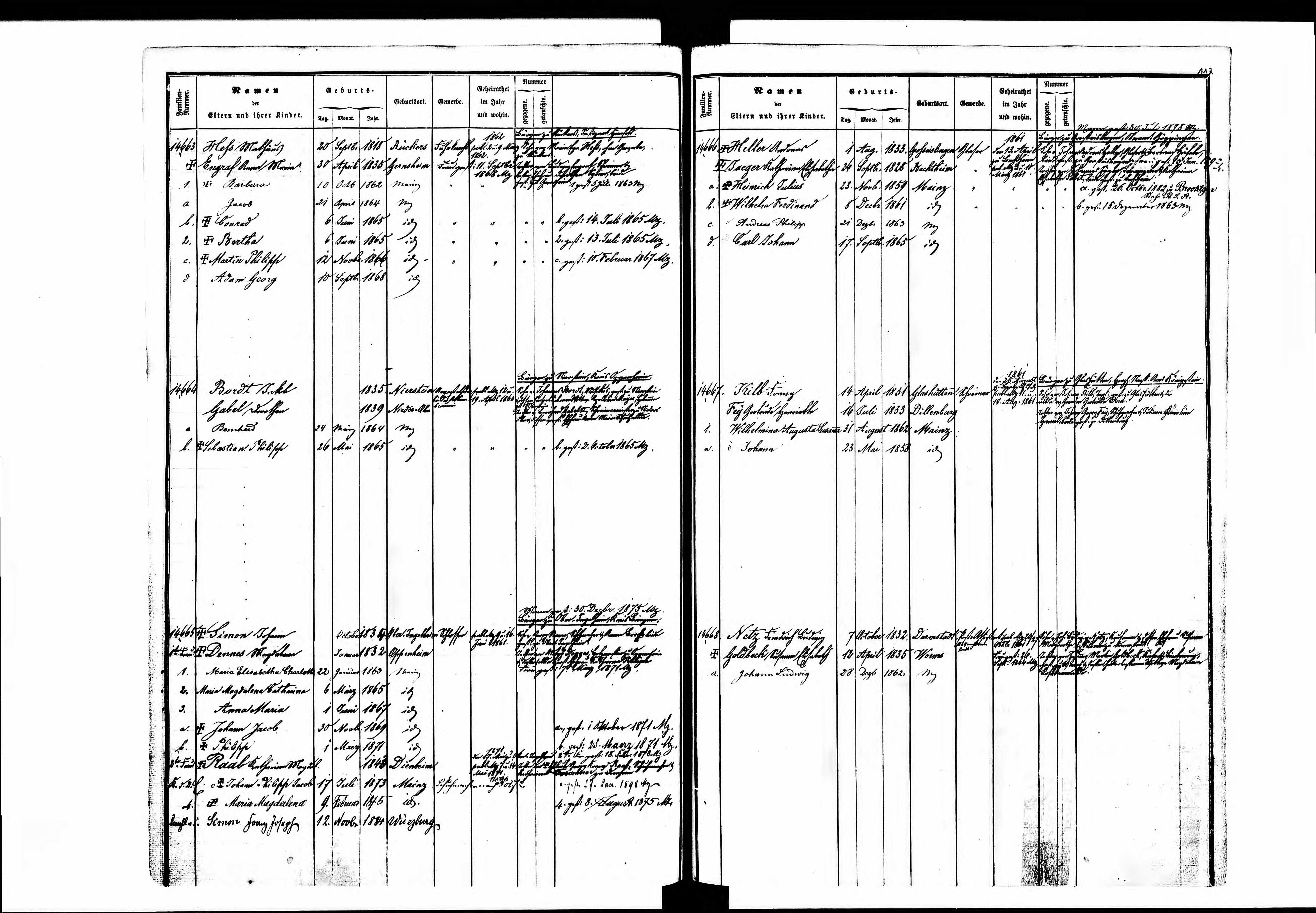 Zum Familienbuch; da steht in der Spalte geheiratet: den 25:August 1861 zu Biebrich a/R