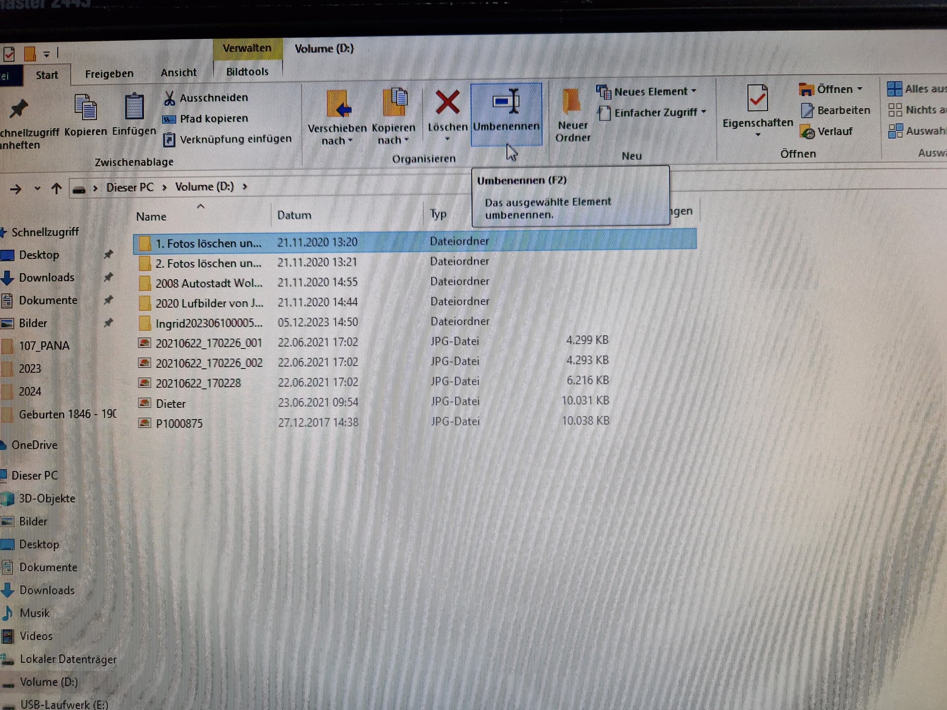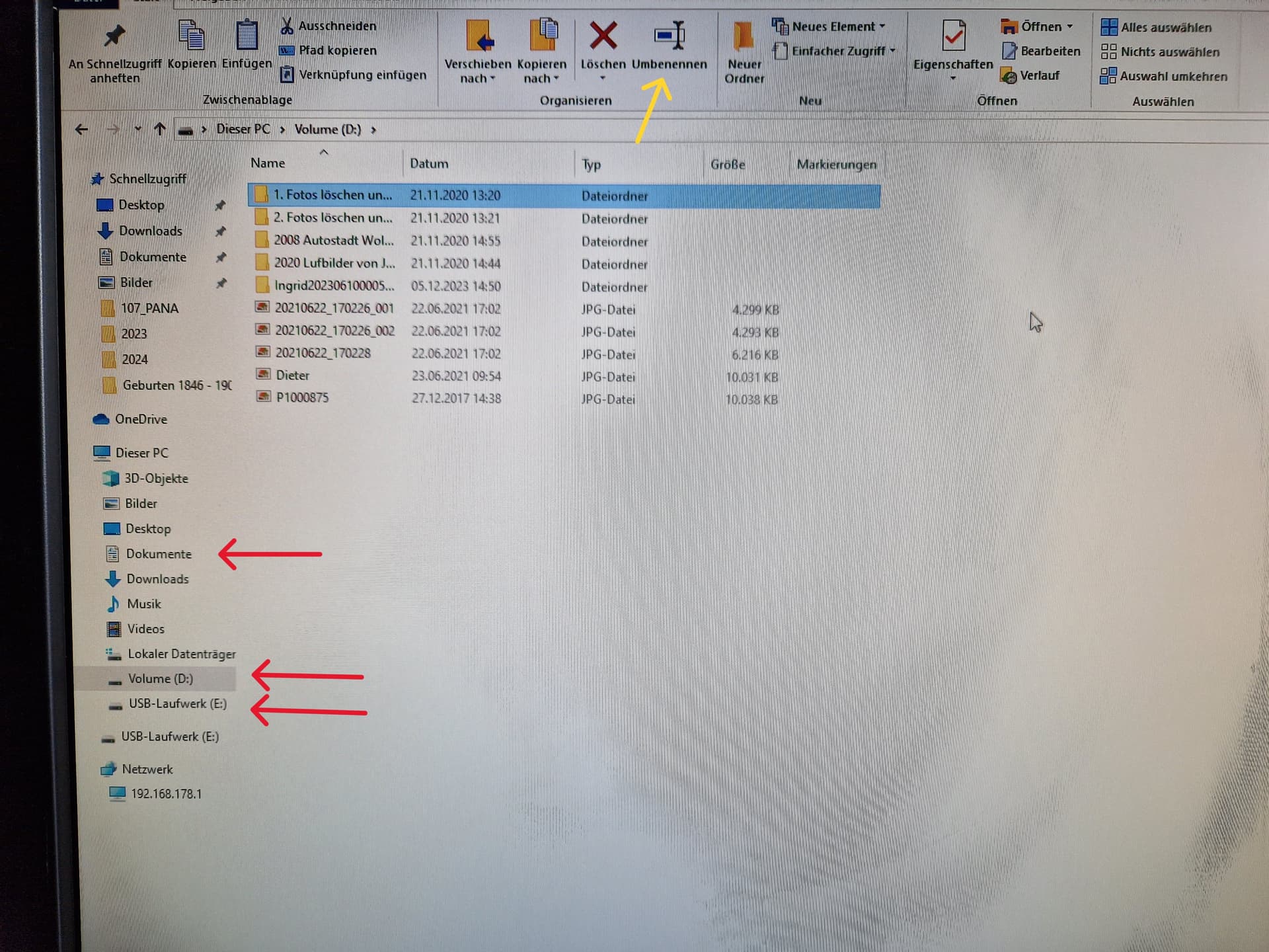 Dann klicken Sie mit der linken Maustaste im oberen Menü „Umbenennen“ an (siehe gelber Pfeil).