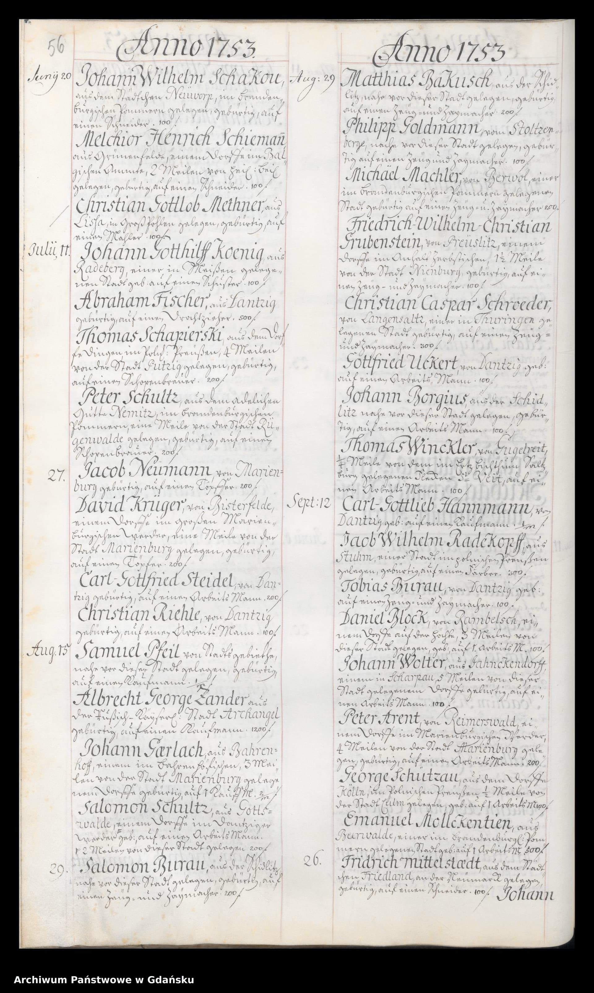Wollte gerade einen Salomon BURAU aus Schidlitz einstellen (29.Aug.1753).