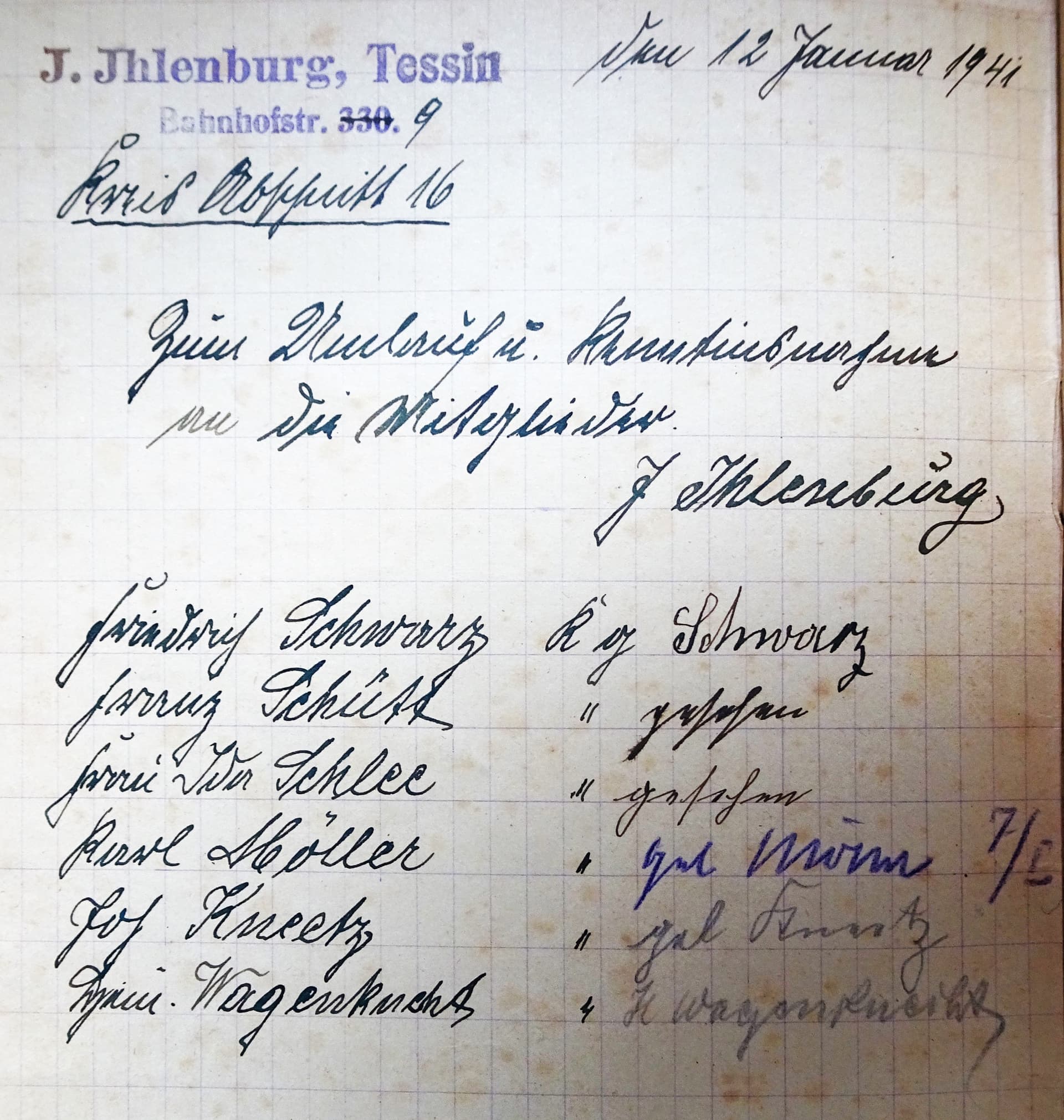 J. Jhlenburg [ I. Ihlenburg ], Tessin den 12[.] Januar 1941