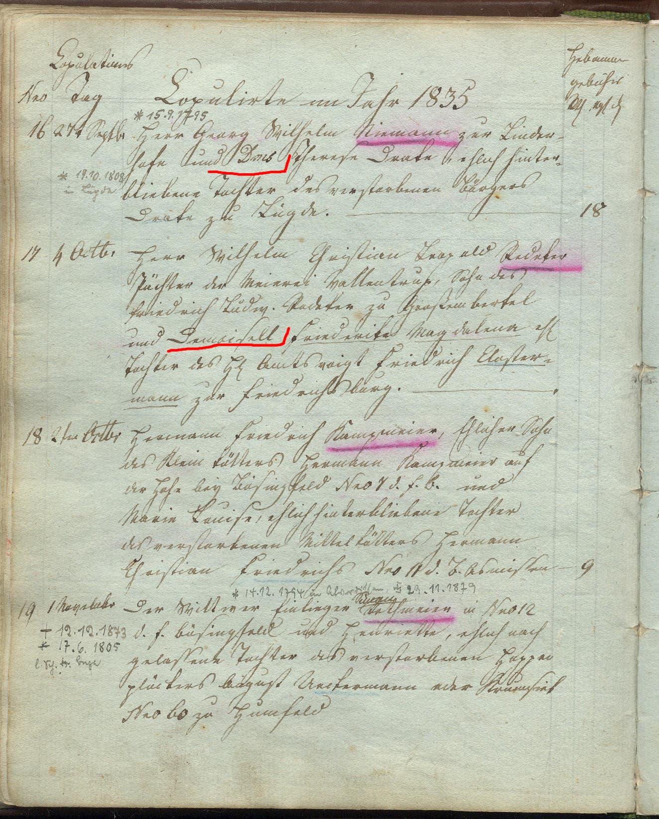 da steht „Demoiselle“ (=Jungfrau). Bei der ersten Stelle abgekürzt, bei der zweiten ausgeschrieben. Die Verwendung eigentlich in der Zeit nicht mehr üblich, wohl noch ein Überbleibsel aus der „Franzosenzeit“.
