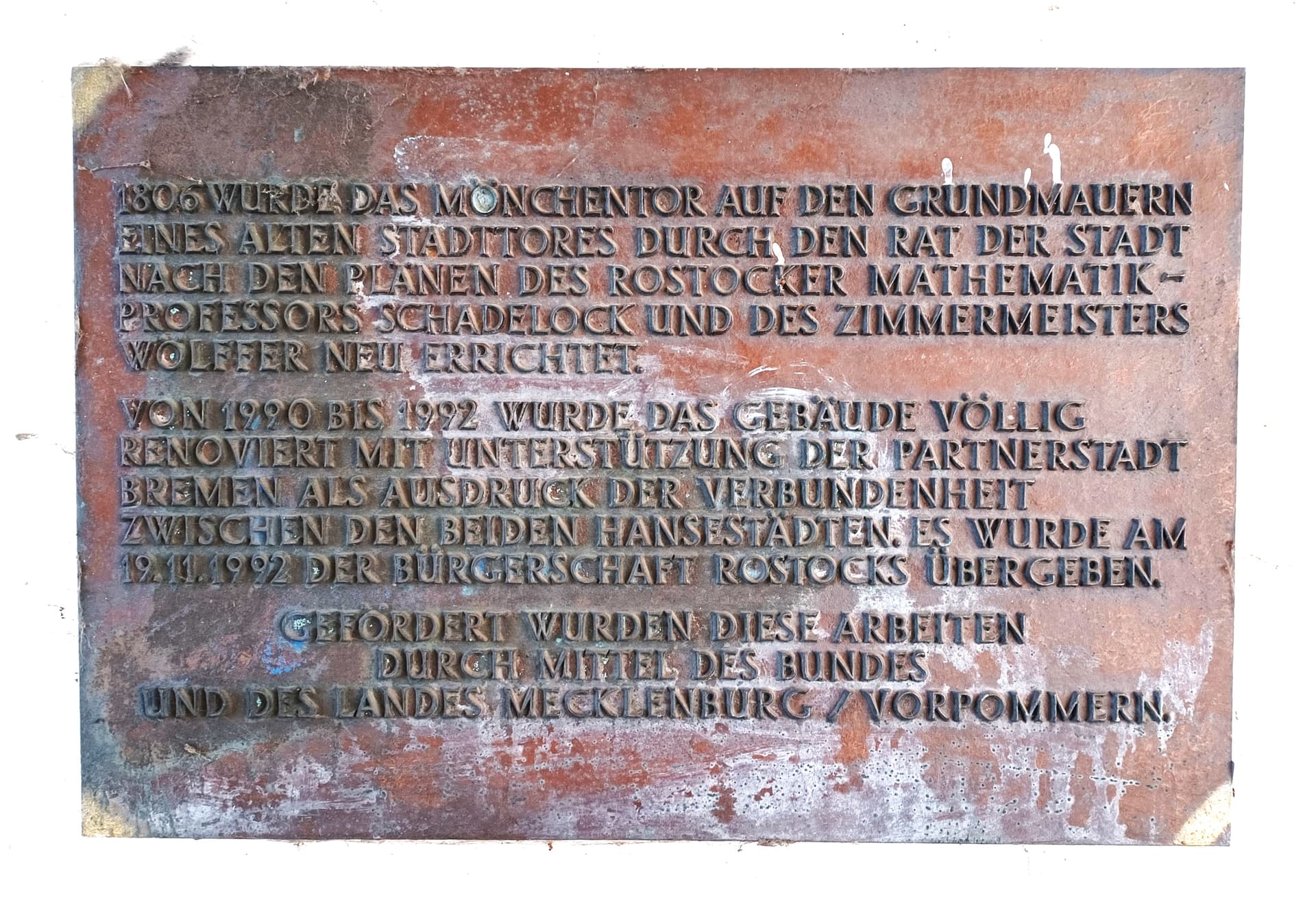 nachfolgend aktuelle Fotos v. Mönchentor u. den Gedenktafeln in Rostock.