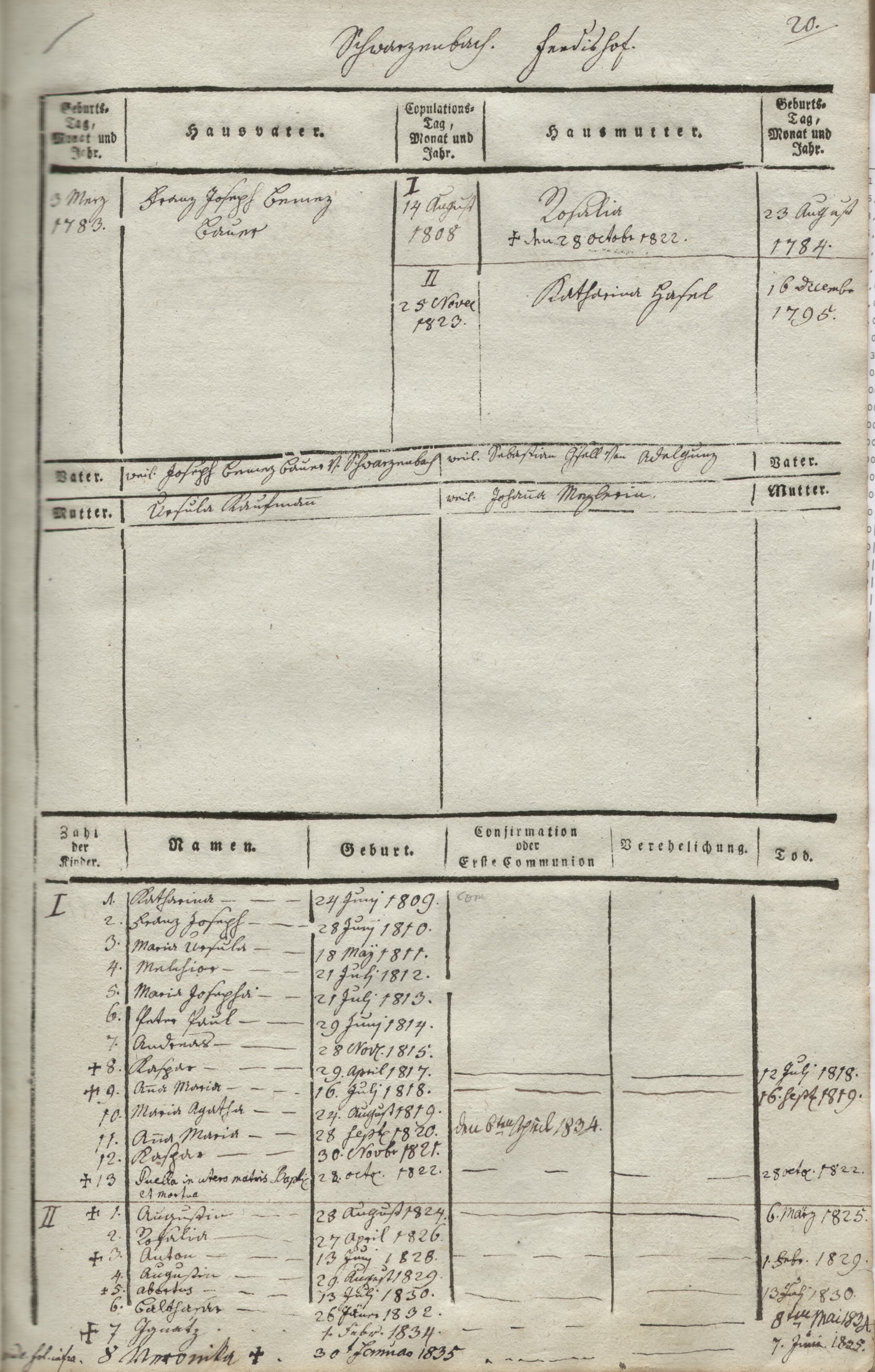 Huber, M. Johannes, verh…am 09.01.1774 mit Anna Maria Stifenhofer