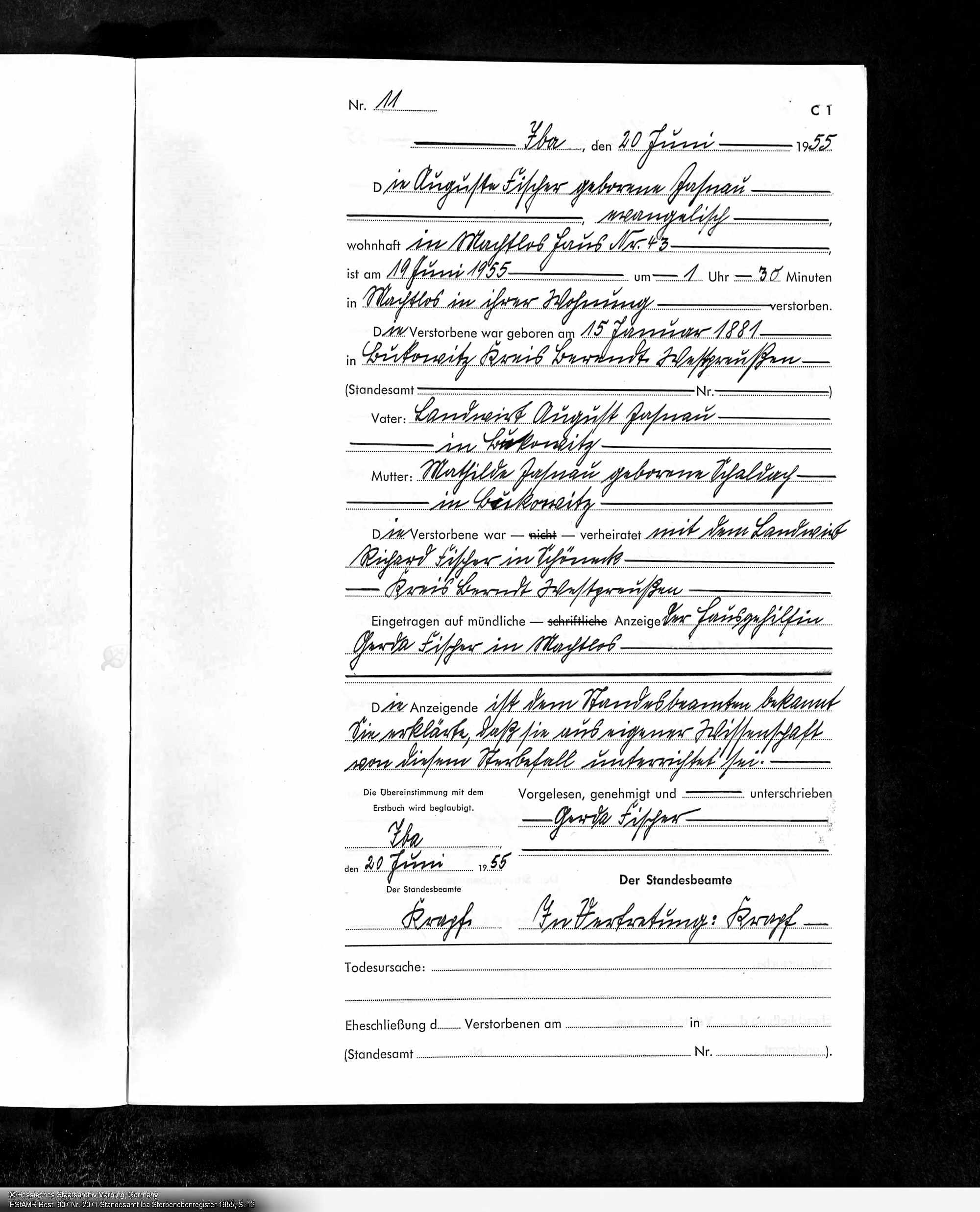 gestorben 1955 in Iba, Hersfeld-Rothenburg, Hessen