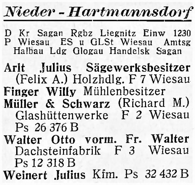 Dann noch einen Bruder Karl Schaller und eine ältere Schwester Charlotte Schaller, geb, am 29,.01.1902 in Nieder-Hartmannsdorf, verheiratet mit Max Kleingärtner, geb. am 15.09.1893 in Sagan (Hochzeit am 21.05.1929 in Nieder-Hartmannsdorf) und mit ihm dann in Sagan, Gymnasialstraße 2/3 wohnhaft.