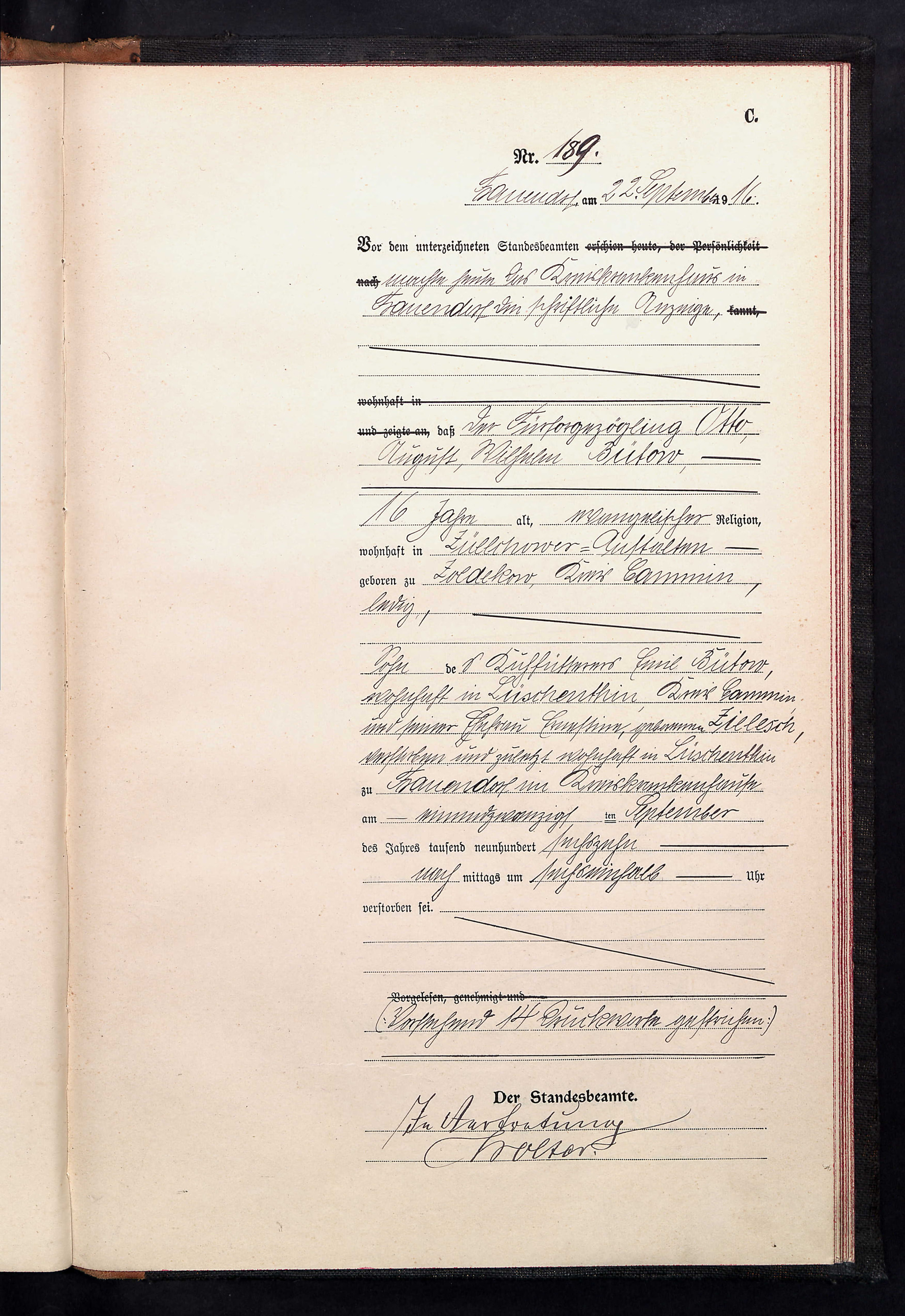 Ich lese, dass er Sohn von Emil und Ernestine ist und zuletzt wohnhaft im Kreiskrankenhaus war, wo er auch verstorben ist. Ich denke deshalb, dass er Fürsorgezögling des Krankenhauses war.