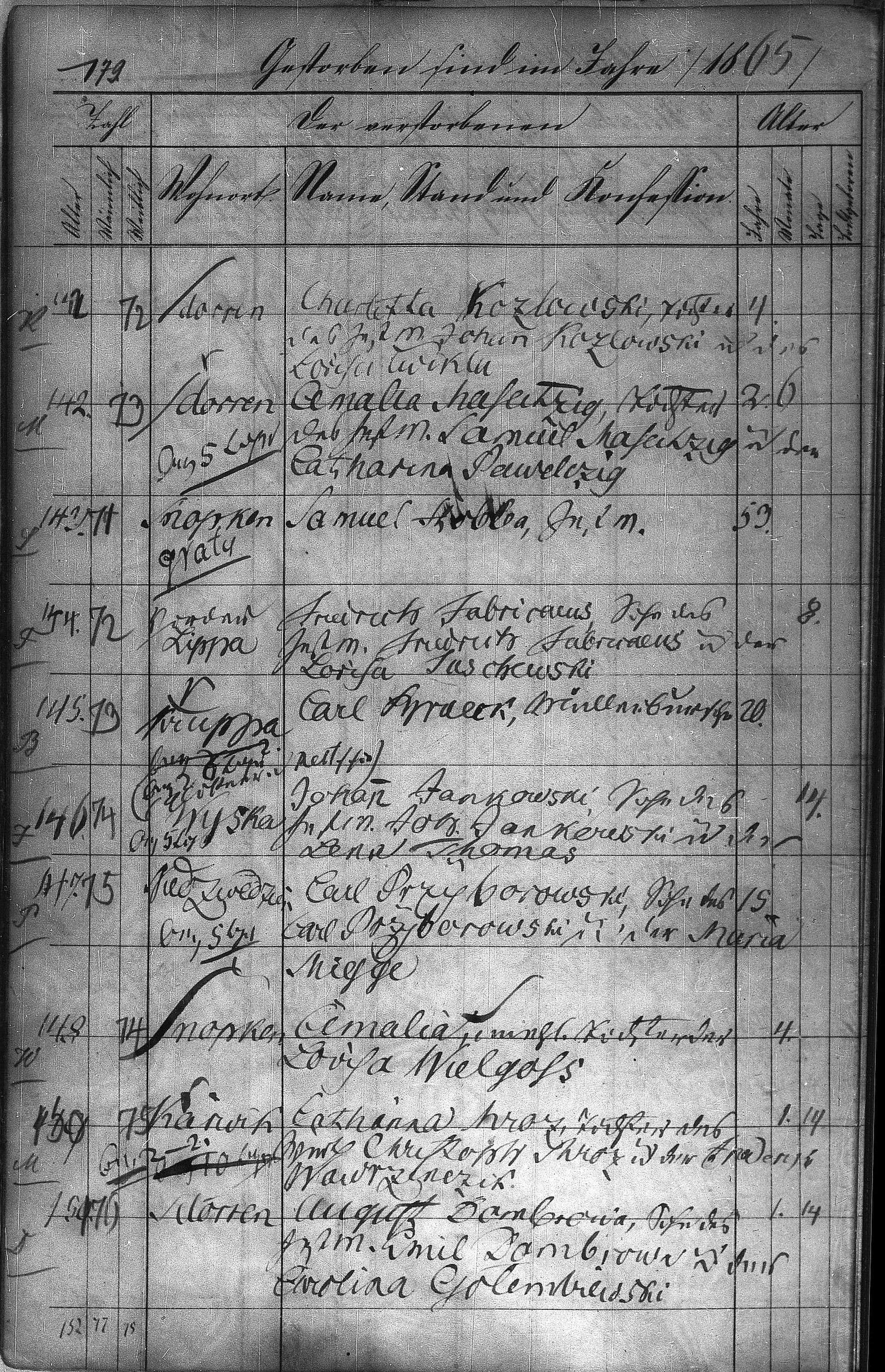 Ganz unten die letzten Zeilen für den Namen Dombrowa, August.
