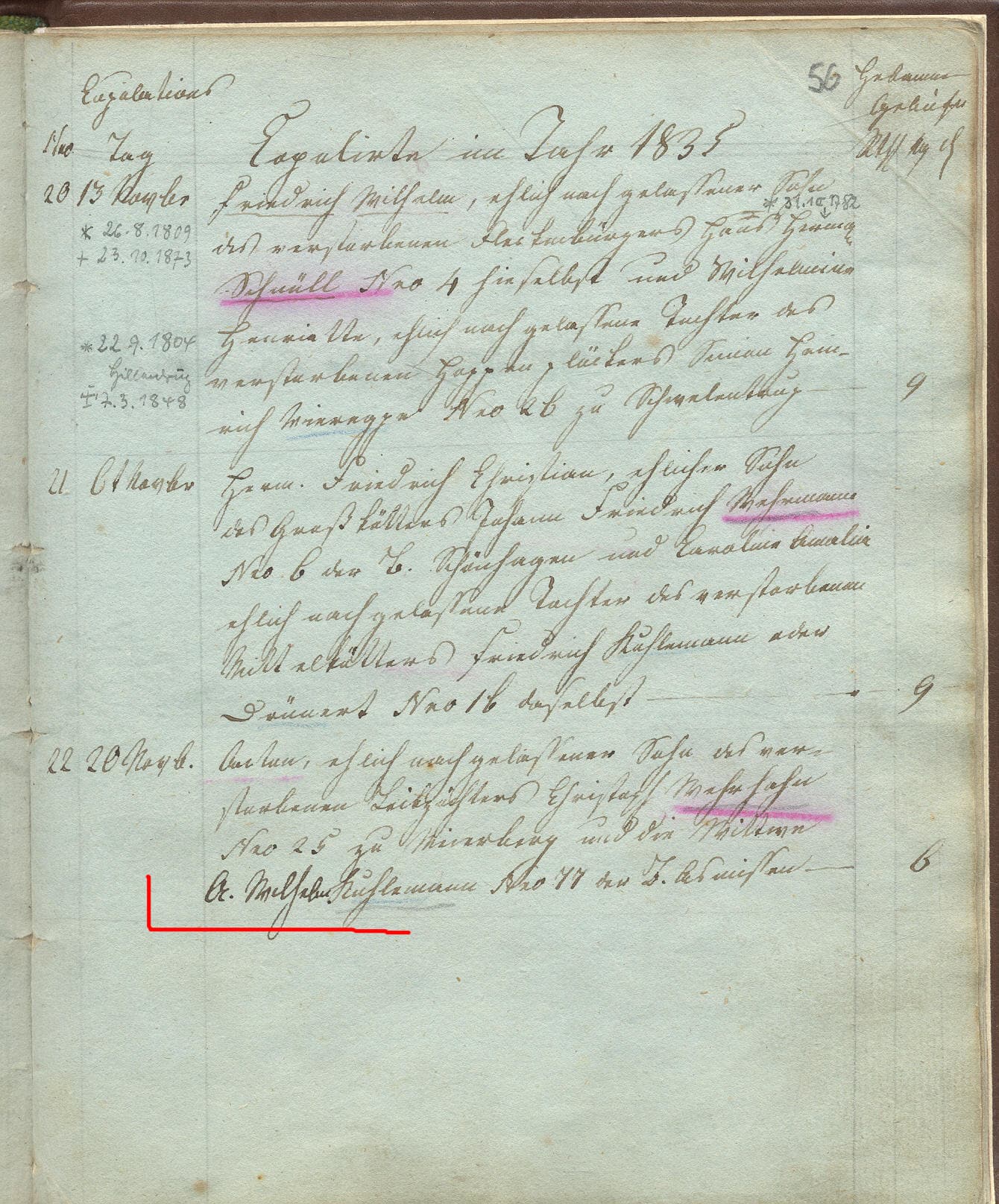 Ich habe hier im Eintrag Nr. 22 eine Witwe deren Name ( wahrscheinlich Amalia Wilhelmine ) abgekürzt wurde.