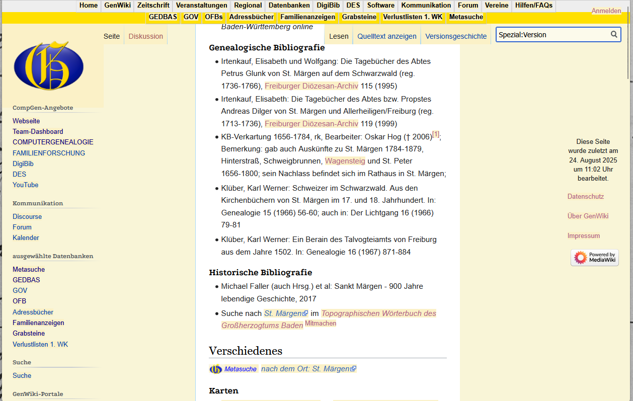 Es wird aber bei den Ortsartikeln schon gleich am Anfang der neue style geladen, wie er in der Wikimedia 1.39-Version zu sehen ist. Die Kirchenbuch- und sonstigen Seiten kommen noch im alten style.