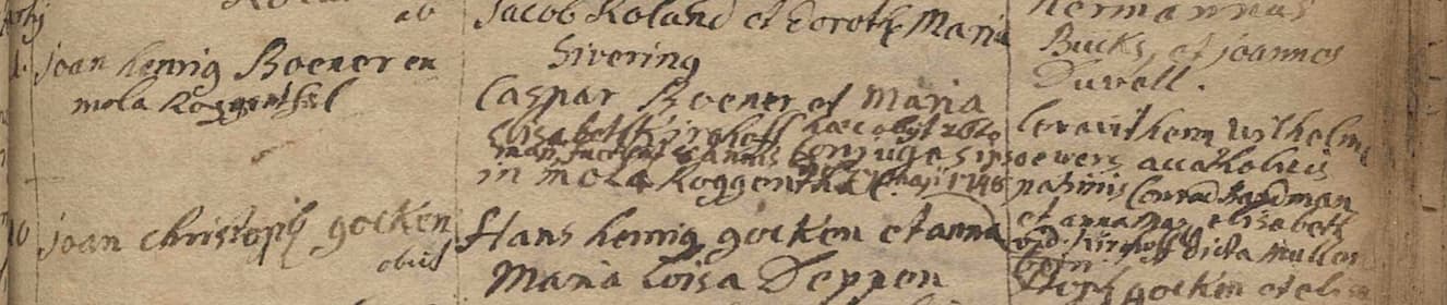 Caspar Boener und Maria Elisabeth Kirghoff … in mola Roggenthal.