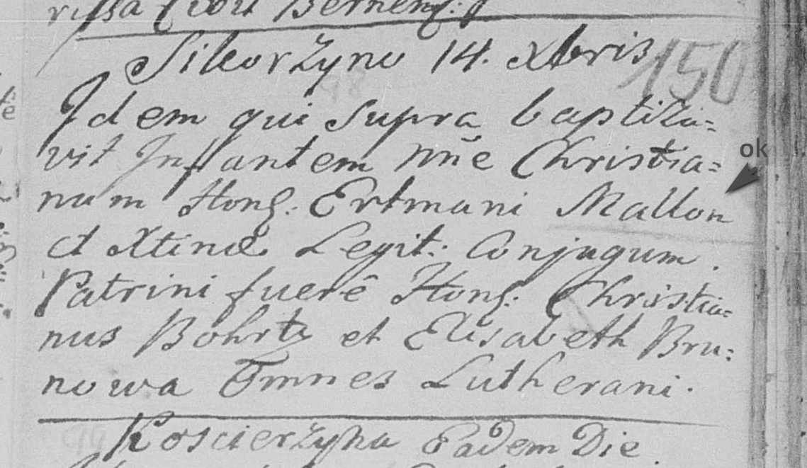 Vermeintlich deshalb, weil sich herausgestellt hat, dass dieser Christian ein weiterer Sohn von Ertmann ist ( Mutter Christine). Dann ist der Ertmann Mallon *1753 tatsächlich der gesuchte Ertmann unseres Stammbaumes.