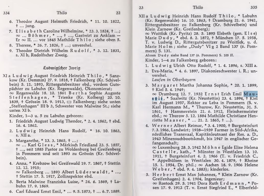 Ergänzung: Mausolf in Deutsches Geschlechterbuch Band 145