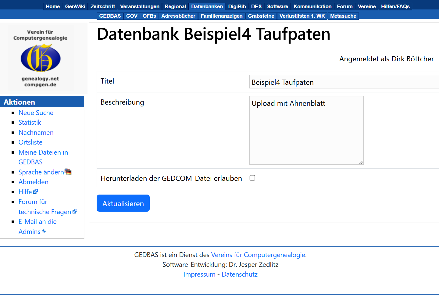 die Datenbank bestand bereits, als ich mit den GEDBAS-Updates begann. Jetzt, wo Du hier fragst, ist mir eingefallen, dass das Problem von mir bereits im April gemeldet wurde:
