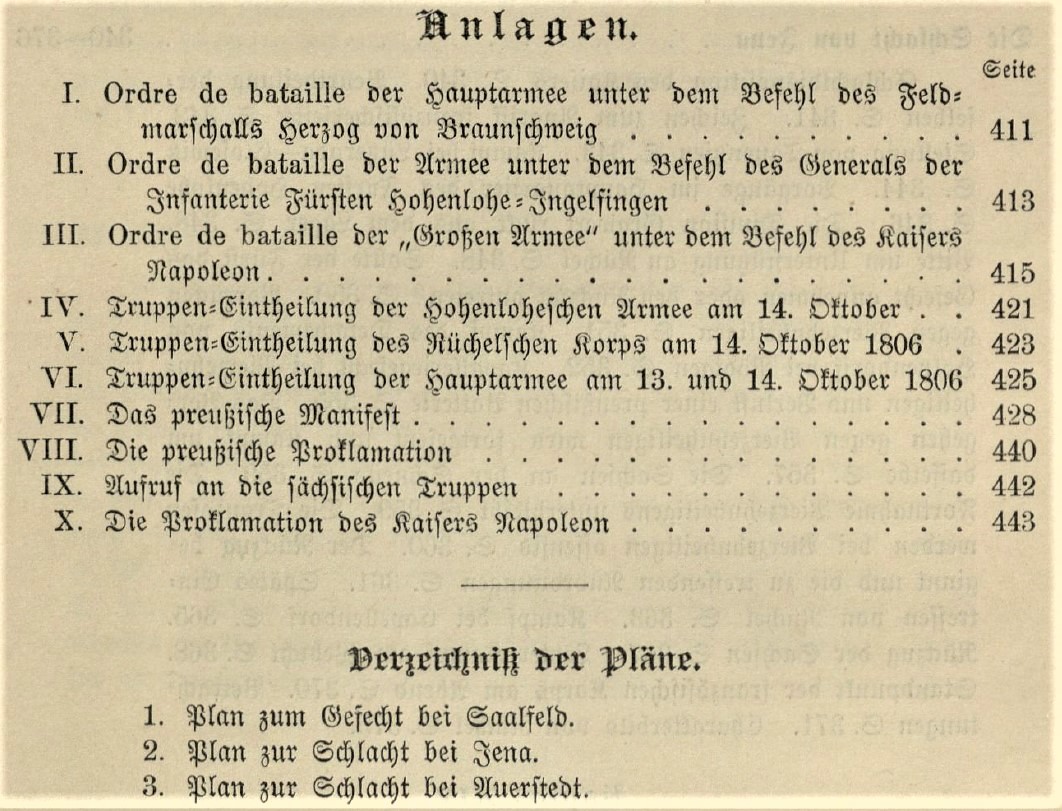 Anlagen und Pläne aus: Lettow-Vorbeck O. Der Krieg von 1806 und 1807. Erster Band: Jena und Auerstedt, Berlin 1891.