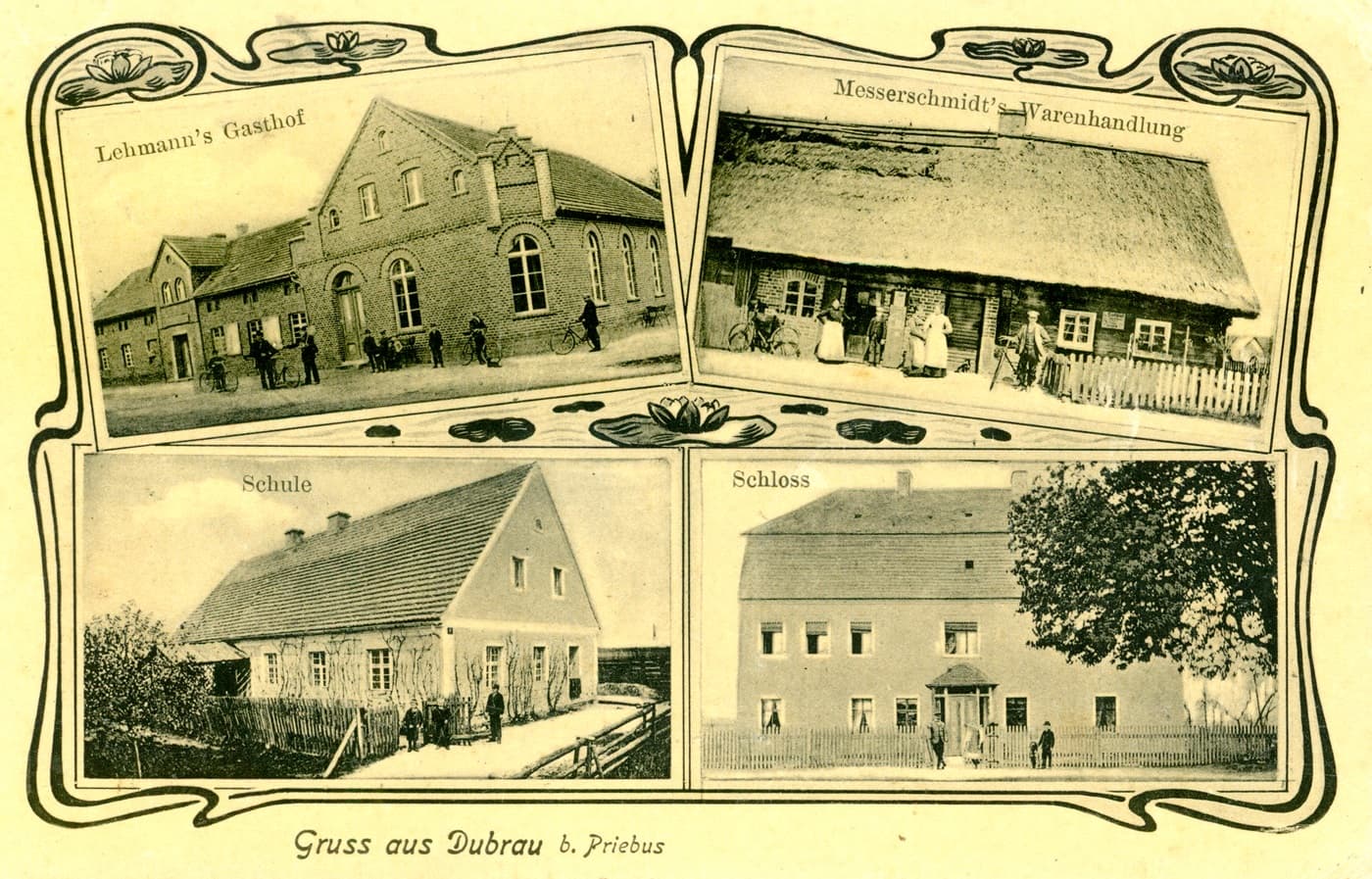 ja es gab in Dubrau eine Dorfschule. Das belegt eine Ansichtskarte, auf der die Dorfschule abgebildet ist.