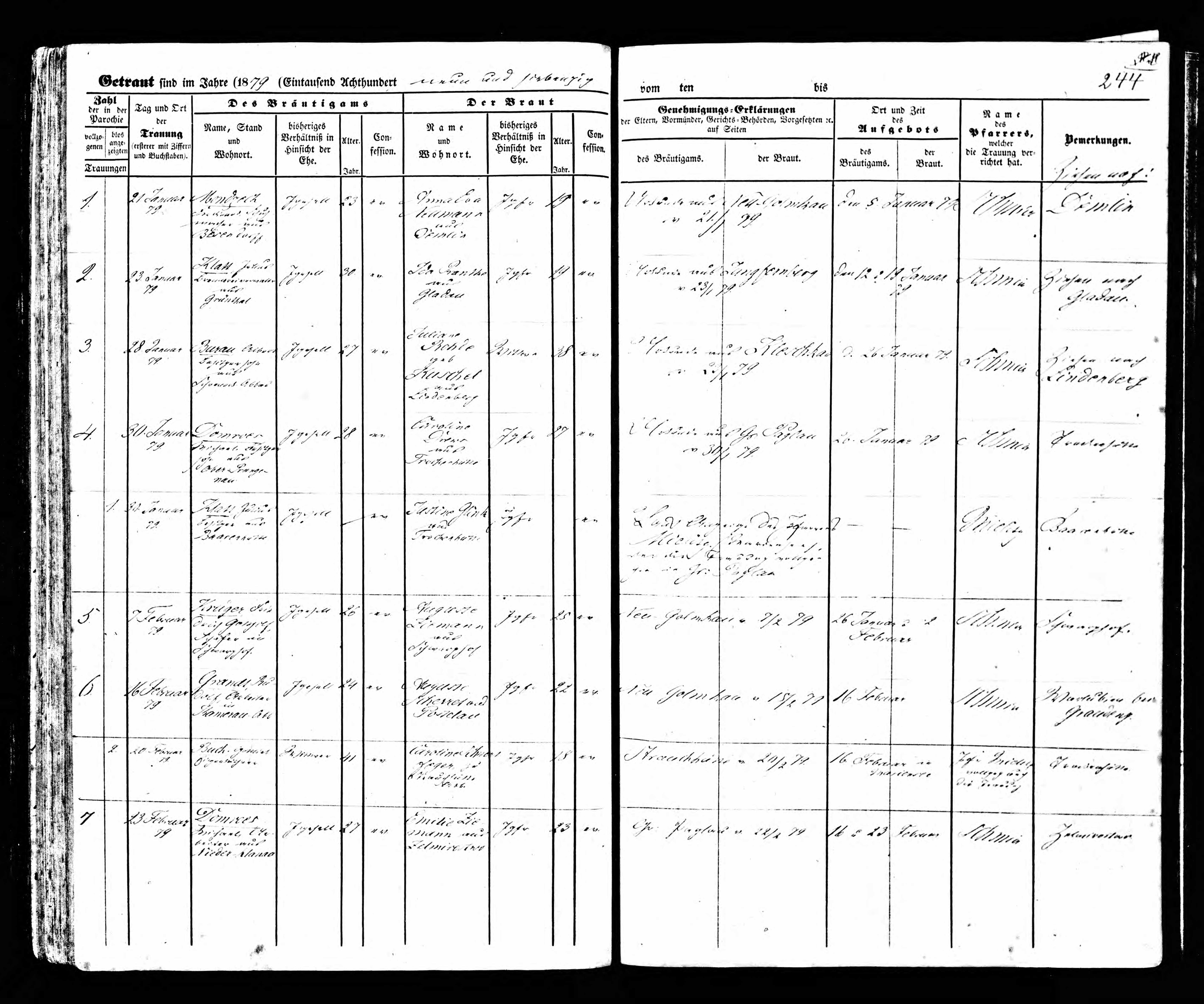 Ehe Nr. 3: 28.01.1879, ev Schoeneck-Land, Albert Burau