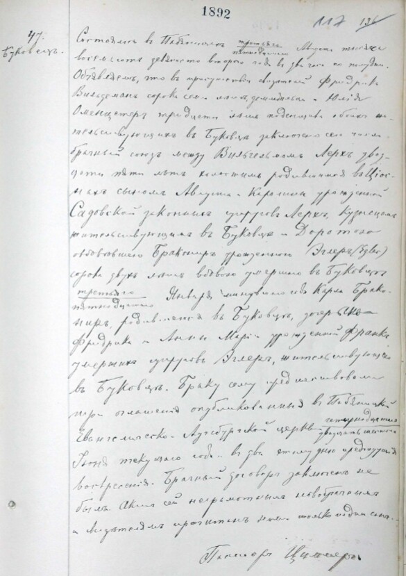 Dorothea Brakonir, geb. Egler, 42 J., Witwe des am 3./15. Januar im vergangenen Jahr verstorbenen Karl Brakonir, geb. in Bukowiec, Tochter von Friedrich und Anna Maria Frank, Eheleute Egler, wohnhaft in Bukowiec