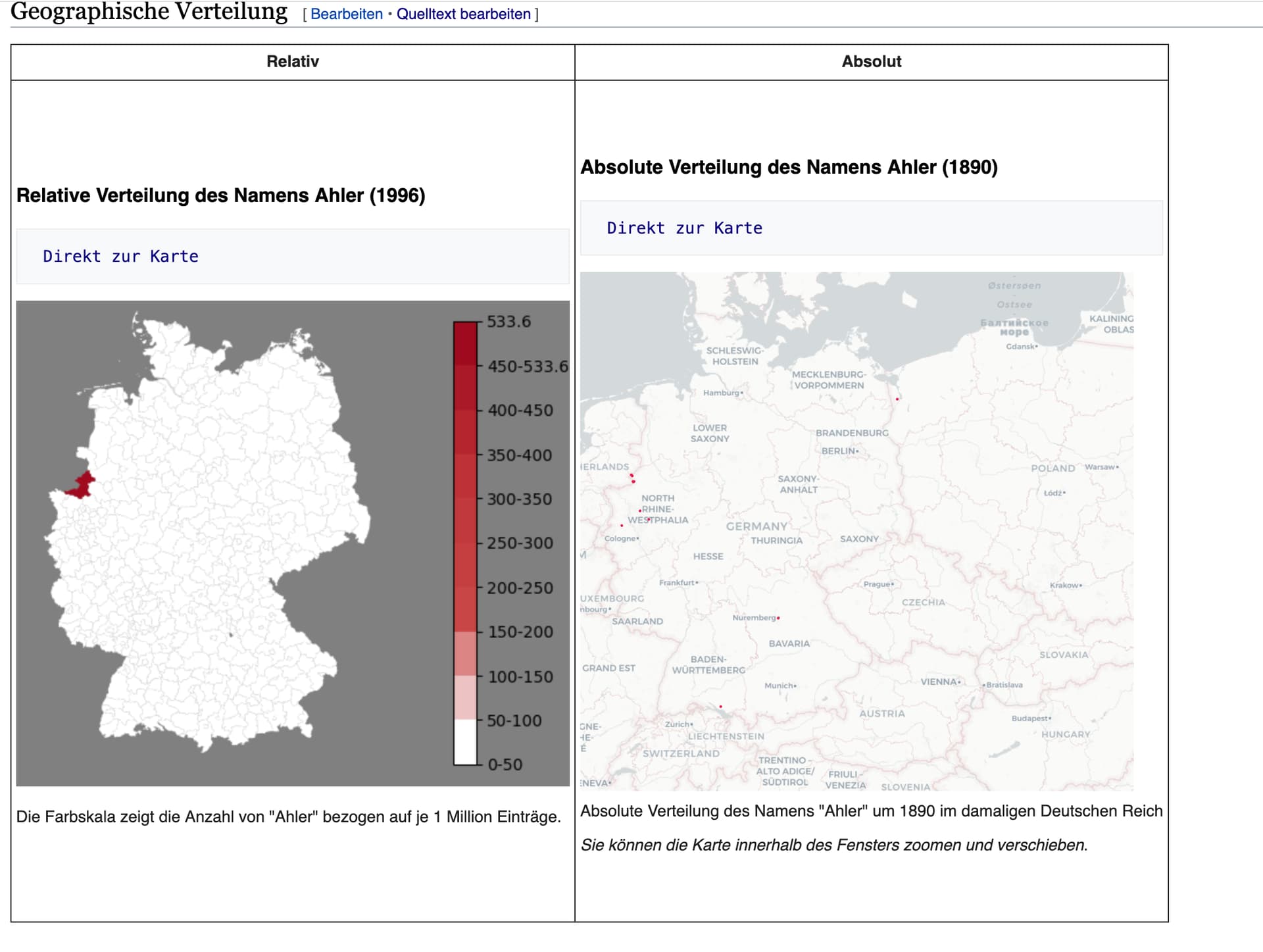 Bei der Namenverbreitungsseite (relatuve Verteilung) wird