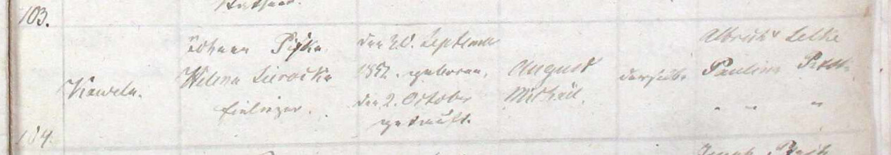 So weit ich auf PTG sehen konnte, hat die Helena den Johann Piwkowski bzw. Pipka 1850 geheiratet. Danach wurden 2 Kinder in Seefeld taufen gelassen. Die habe ich auch auf Metryki gefunden. Einen August Michael 1852 geboren in Kaweln.