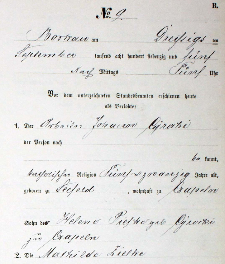 mein Ururgroßvater Johann Sirotzki/Cyrocki war gemäß Heiratseintrag beim STA Mattern von 1875 25 Jahre alt. Seine Mutter ist angegeben als Helene Piefke, geb. Cyrocki.