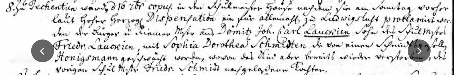 Friedr. Lauckien, mit Sophia Dorothea Schmidten die von einem Schmidtsgeselln [=Schmiedegesellen]